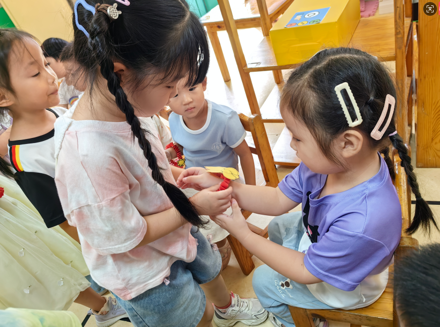 哥哥姐姐送礼物 来源: 发布时间:2025-09-28 11:07:51 浏览次数: 次 【字体:小 大】 今天,大班的哥哥姐姐给我们送礼物啦!看,是什么?好漂亮呀,哥哥姐姐还亲手给我带上呢。 分享到: 【打印正文】