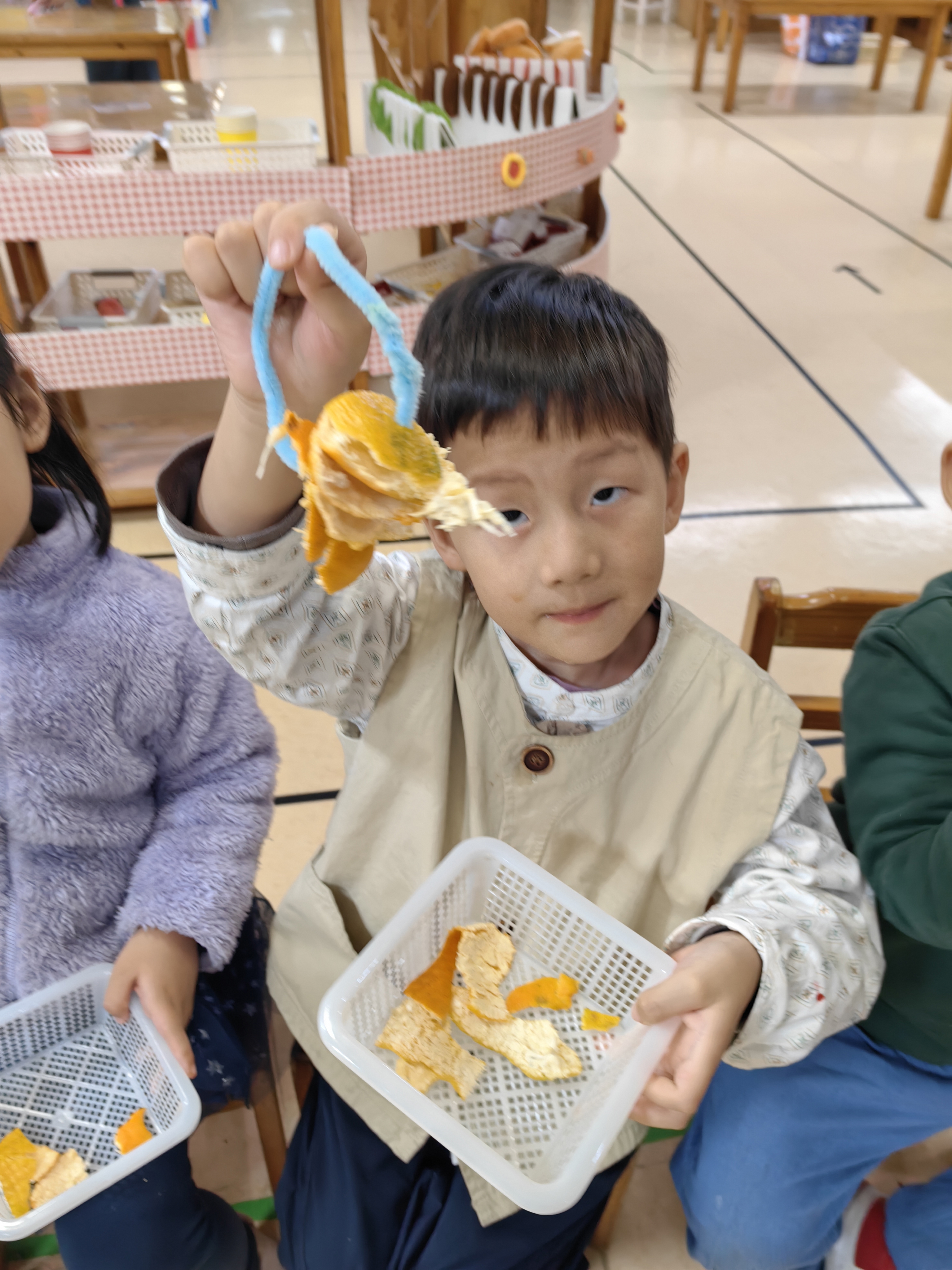 手工活动《橘子皮手链》 来源: 发布时间:2025-11-12 12:50:15 浏览次数: 次 【字体:小 大】 把秋天穿在手上!小朋友的橘子皮手链,带着自然的清香,是独属于童年的创意小浪漫呀~ 分享到: 【打印正文】